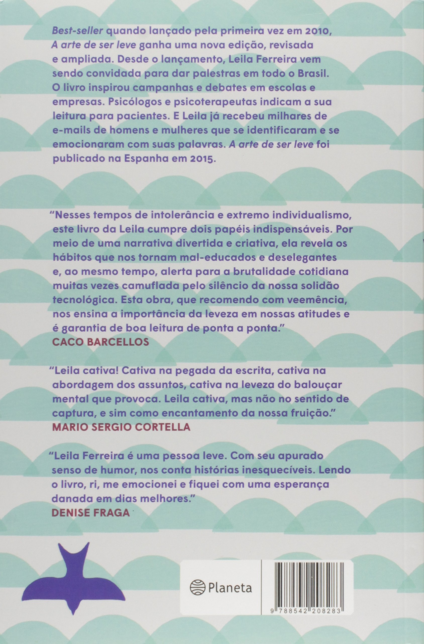 Gentileza, bom humor, desaceleração e felicidade são alguns dos temas discutidos de forma inteligente e divertida por Leila Ferreira. Exímia contadora de histórias e entrevistadora, Leila reflete, a partir de depoimentos colhidos por ela no Brasil e em outros países, sobre a possibilidade de vivermos de forma menos complicada e estressante. Ao fazer o leitor enxergar, de forma crítica, as ciladas que criamos para nós mesmos, A Arte de Ser Leve aponta para o perigo de emagrecermos o corpo, mas ficarmos com obesidade mórbida de espírito. Que tal experimentar a dieta da alma e incorporar a leveza às nossas vidas?